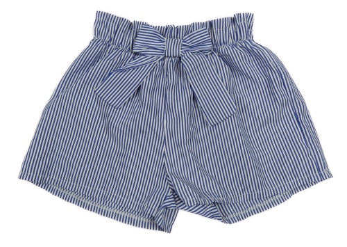 Tmavomodro-bílé pruhované kraťasy s mašlí