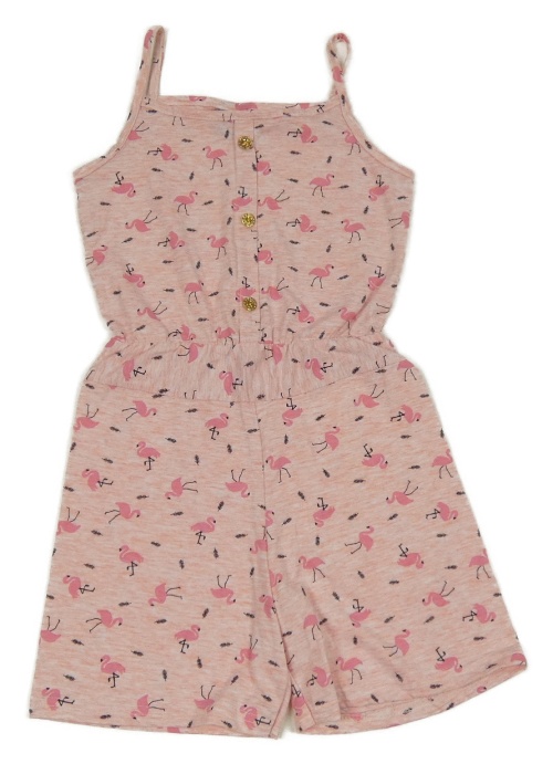 Růžovo-bílý melírovaný letní overal s plameňáky Disney