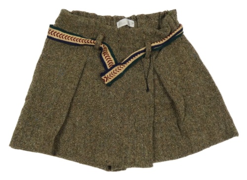 Hnědé melírované vlněné kraťasy se sukní a páskem ZARA