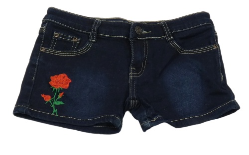 Tmavomodré teplákové riflové kraťasy s růží