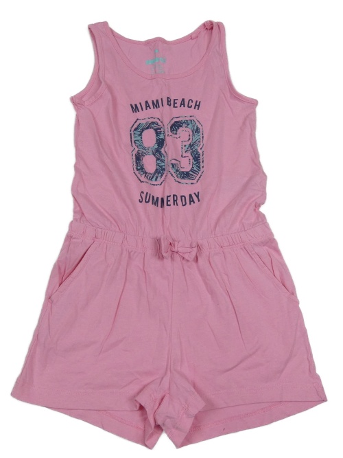 Růžový bavlněný kraťasový overal s nápisem Pepperts