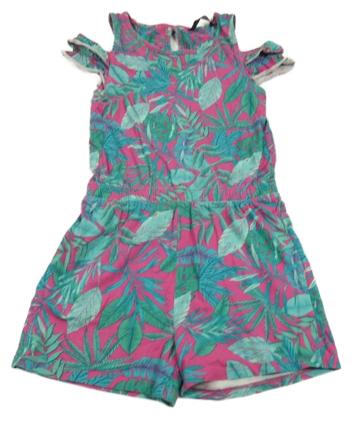 Růžovo-zelený kraťasový overal s listy George