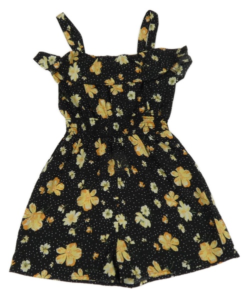 Černý puntíkatý kraťasový overal s květy a volánkem PRIMARK