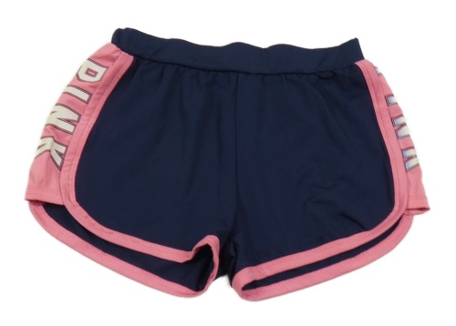 Tmavomodro-růžové sportovní kraťasy s nápisem