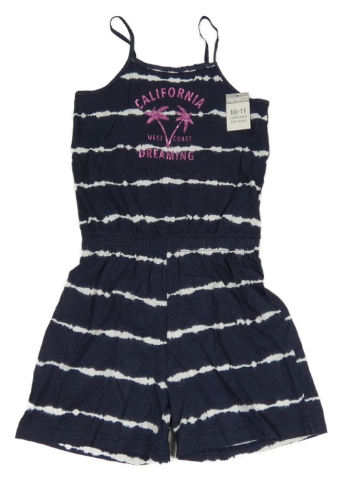 Nové - Tmavomodro-bílý batikovaný kraťasový overal s palmami Pep&Co