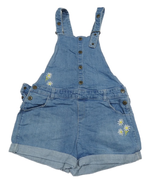 Světlemodré riflové laclové kraťasy s kytičkami Vertbaudet