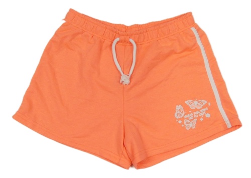 Nové - Neonově korálové teplákové kraťasy s motýlky a pruhem St. Bernard