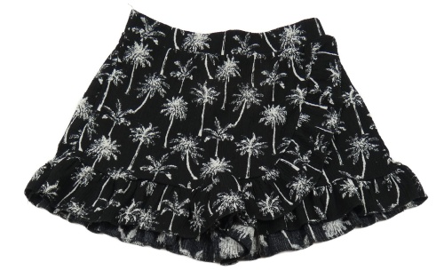 Černé mačkané kraťasy s bílými palmami a sukní s volánkem Page one young