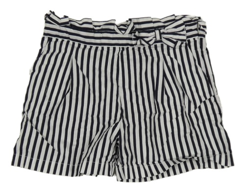 Černo-bílé pruhované plátěné kraťasy s mašlí