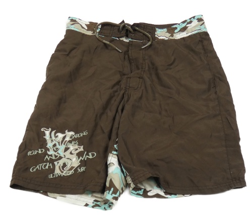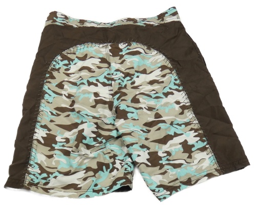 Hnědo-modré plážové kraťasy s army vzorem