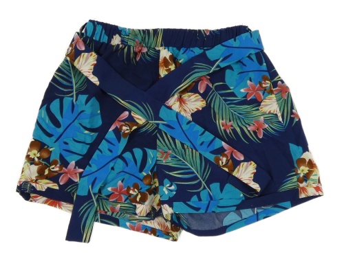 Tmavomodré lehké kraťasy s listy a páskem Shein