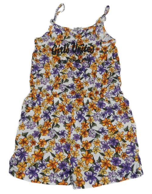 Bílo-fialovo-oranžový květovaný kraťasový overal s nápisem Page one young