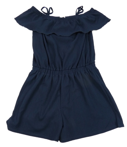 Tmavomodrý žebrovaný kraťasový overal s volánem