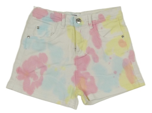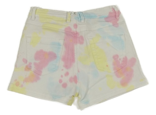 Bílo-růžovo-žluto-světlemodré batikované riflové kraťasy sinsay