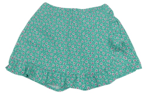 Zeleno-bílo-fialové květované sukňové kraťasy