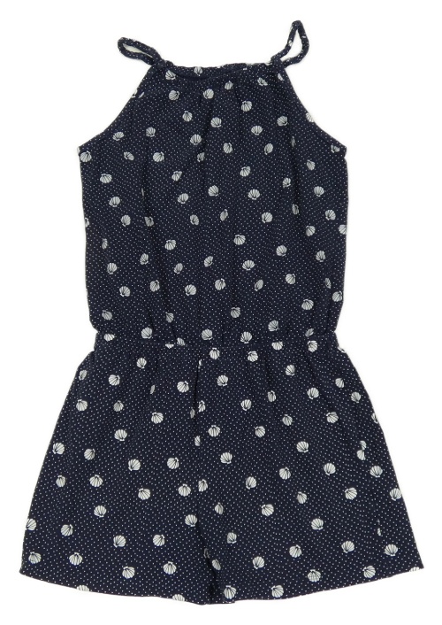 Tmavomodrý puntíkatý letní overal s mušličkami YIGGA