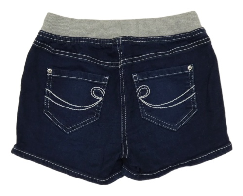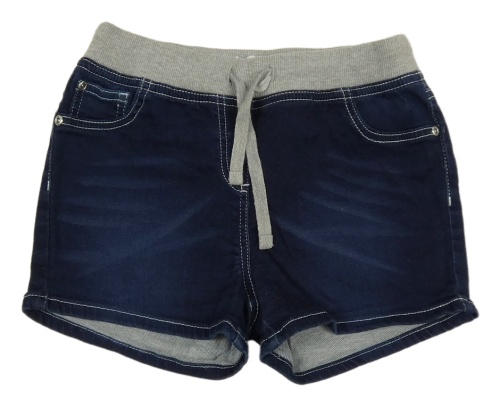 Tmavomodré teplákové riflové kraťasy se šedým úpletovým pasem John Baner