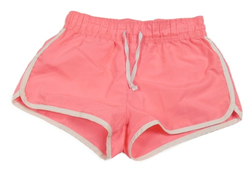 Neonově růžové sportovní kraťasy s bílými proužky
