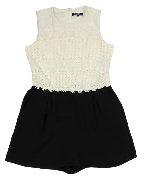 Bílo-černý kraťasový overal s krajkou a květy New Look