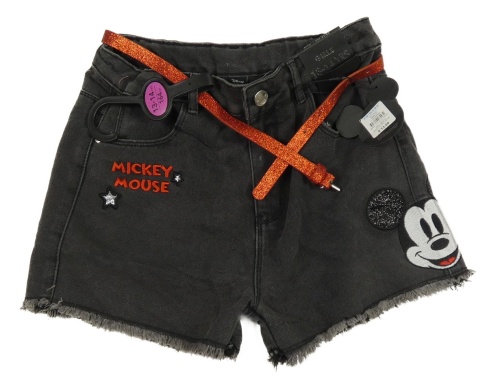 Nové - šedé riflové kraťasy s Mickeym a červeným páskem Primark
