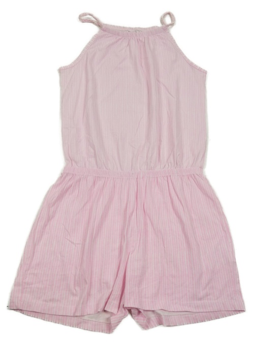 Světlerůžovo-bílý pruhovaný bavlněný kraťasový overal Yigga