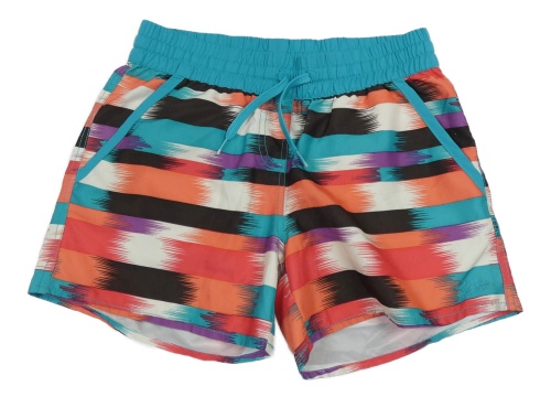 Modro-růžovo-bílo-černé vzorované plážové kraťasy