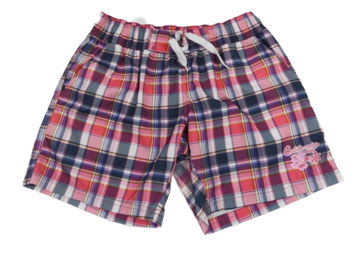Růžovo-tmavomodré kostkované plážové kraťasy Yigga