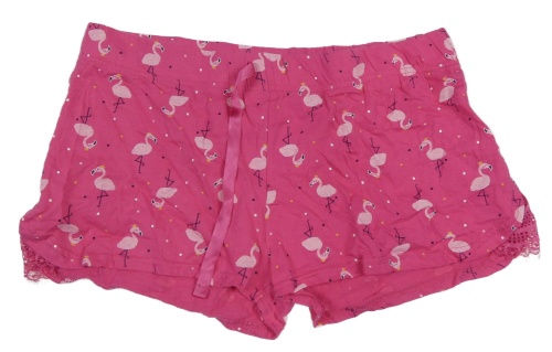 Tmavorůžové bavlněné kraťasy s plameňáky a puntíky