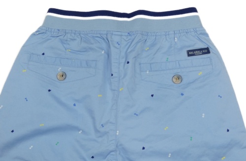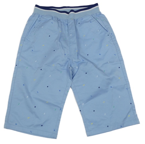 Světlemodré plátěné kraťasy s obrázky a úpletovým pasem