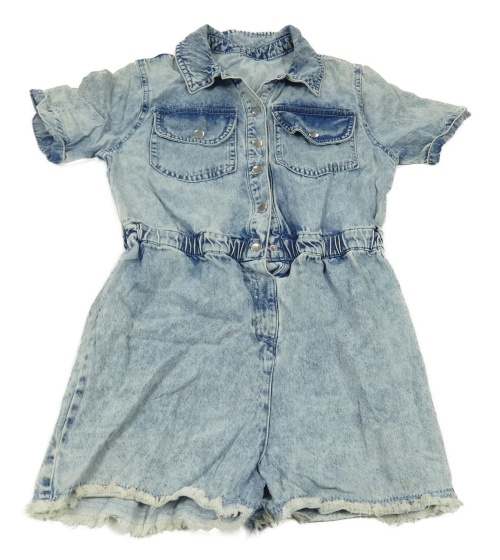 Světlemodrý riflový kraťasový overal s límečkem Dunnes