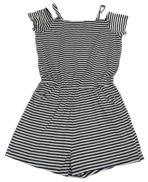 Černo-bílý pruhovaný bavlněný kraťasový overal C&A