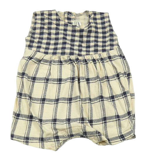 Béžovo-tmavomodrý kostkovaný bavlněný kraťasový overal