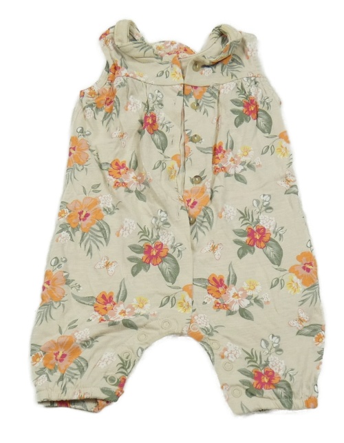 Béžový bavlněný kraťasový overal s květy Dopodopo