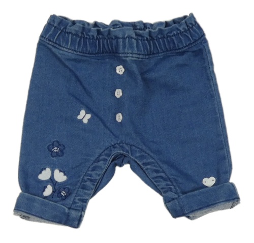 • Modré baggy teplákové kalhoty riflového vzhledu s motýlky a květinami un. Prenatal