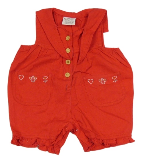 Červený kraťasový overal s obrázky a límečkem