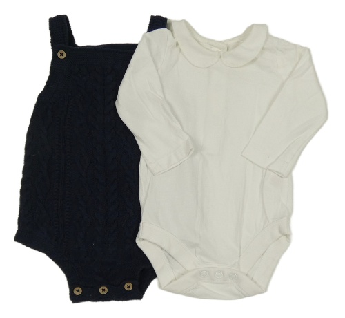• 2Set - Tmavomodré vzorované pletené laclové kraťasy bílé body s límečkem Tu