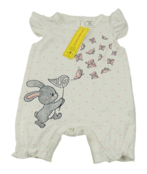 Nové - Smetanový kraťasový overal s králíkem a motýly Shein
