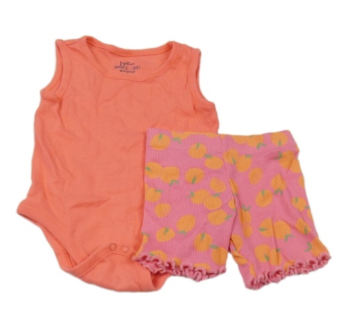 2Set - Růžové žebrované kraťasy s pomeranči PRIMARK + lososové body fagottino