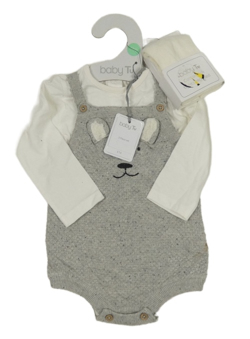 • Nové - 3set - Šedé pletené laclové kraťasy + bílé body + punčocháče Tu