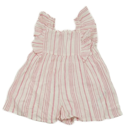 Bílo-růžový pruhovaný kraťasový overal s volánky Primark