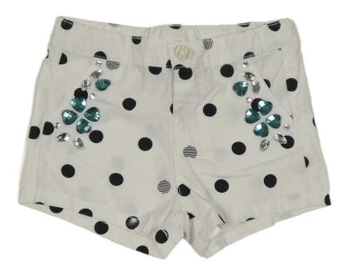 Bílé plátěné puntíkaté kraťasy s kamínky