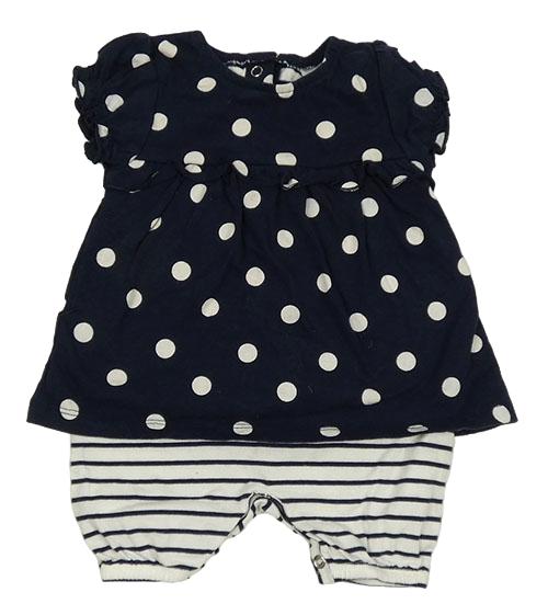 • Tmavomodro-bílý bavlněný kraťasový overal s tričkem s puntíky a pruhy Topomini