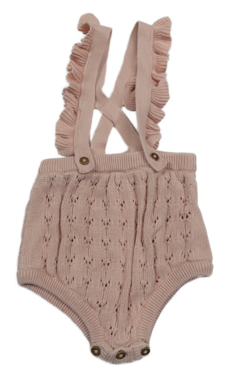 Pudrové perforované pletené kraťasy s kšandami s volánky George