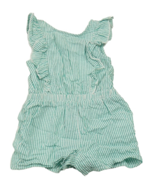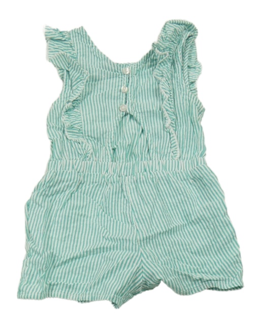Zeleno-bílý pruhovaný kraťasový overal s volánky Kiabi