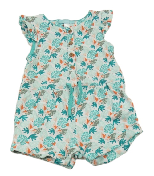 Bílo-zelený kraťasový overal s listy a ptáčky OBAIBI