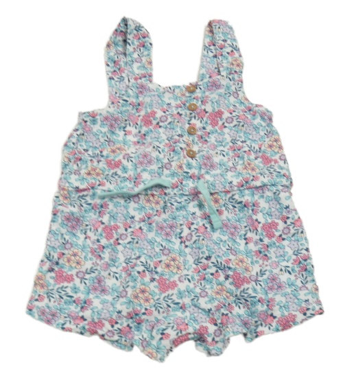 Bílo-světlezeleno-růžový květovaný kraťasový overal Obaibi