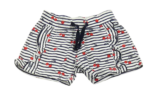 • Bílo-tmavomodré pruhované bavlněné kraťasy s třešněmi a volánky Primark