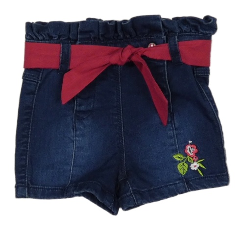 Tmavomodré riflové kraťasy s kytičkami a páskem Orchestra
