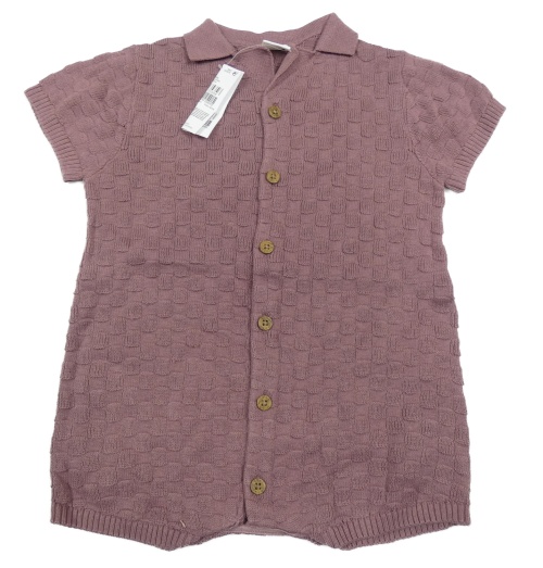 Nové - hnědofialový vzorovaný pletený kraťasový overal s límečkem Next