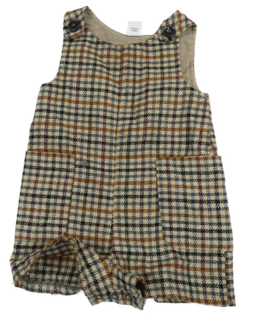 Hnědo-barevný třpytivý kostkovaný vlněný kraťasový overal Tu
